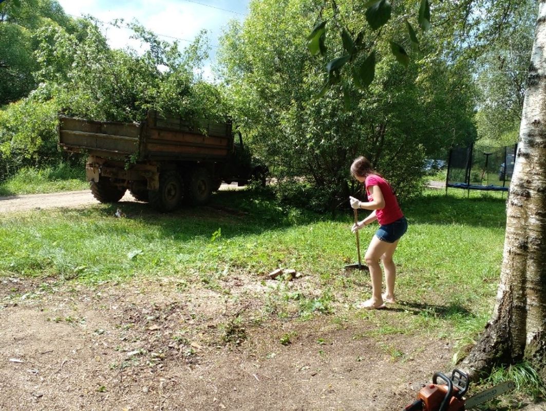 Ею был выполнен большой объем работ: убраны дрова в сарай, освобождено пространство в подсобном помещении, убрана территории у пункта выдачи книг, прополоты цветочные клумбы, открыты, вымыты и заклеены окна, спилен и убран старый кустарник, вымыты потолки, книжные стеллажи и печки, обновлен стенд » Наши земляки — участники Великой Отечественной войны».