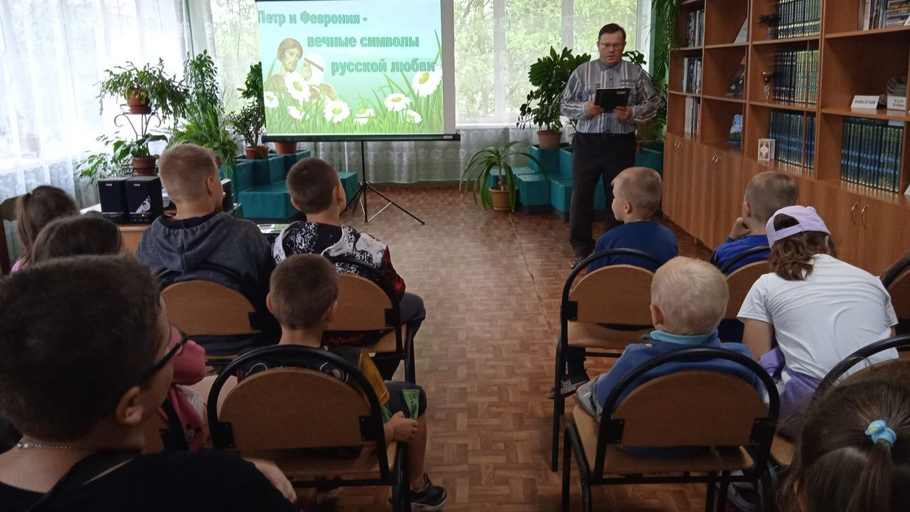 21 июля   для  детей  летнего  лагеря   средней  школы  №1  в читальном зале  центральной  библиотеки  проводился  тематический  час «Пётр  и  Феврония – вечные  символы  русской  любви». Заведующий  информационно-библиографическим отделом  рассказал участникам о празднике  «День  семьи, любви  и  верности», который  отмечается  8  июля, о значении его для жителей России. Познакомил с благоверными святыми Петром и Февронией.