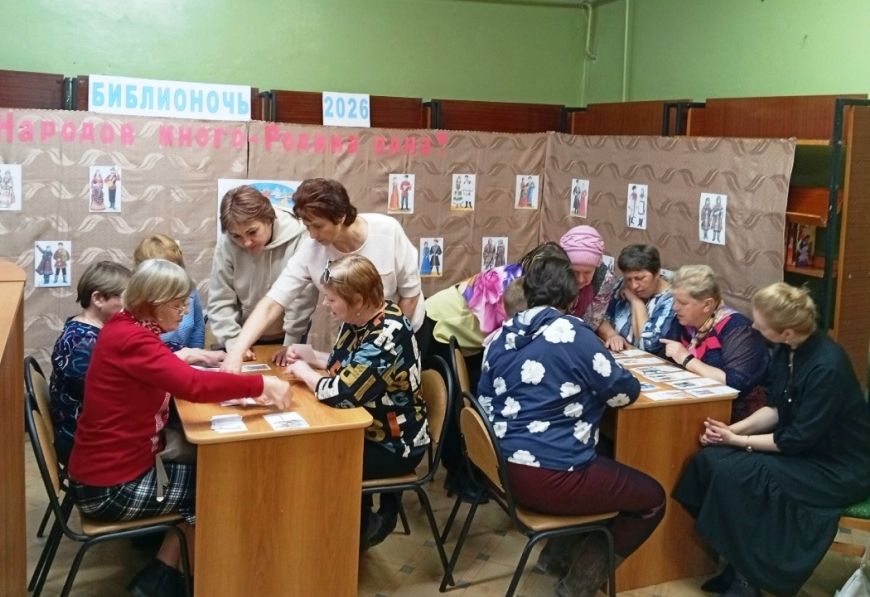 17 апреля наша библиотека приняла участие в ежегодной Всероссийской акции «Библионочь — 2026». Игровая программа «Народов много – Родина одна!» была посвящена Году единства народов России.