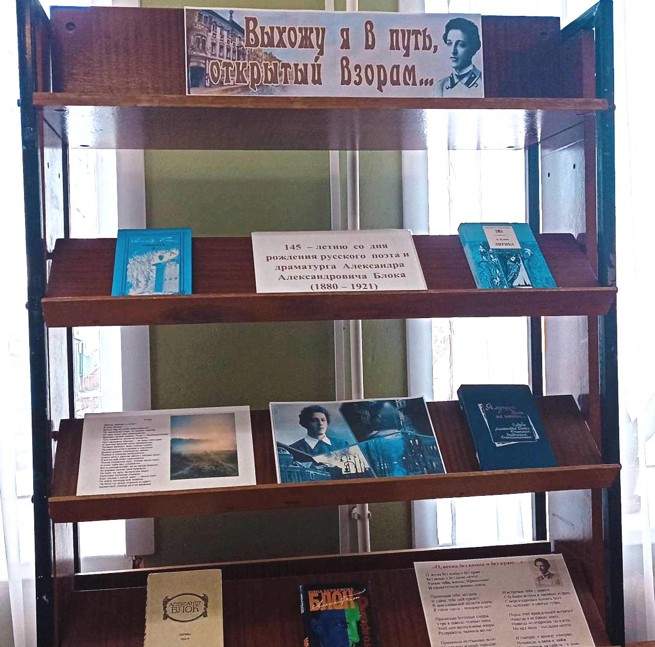«Выхожу я в путь, открытый взорам», приуроченной к 145-летию со дня рождения Александра Блока — русского поэта, писателя, публициста, драматурга, переводчика, литературного критика, классика русской литературы XX столетия, одного из крупнейших представителей русского символизма. Посетители заглянут в мир трагической и прекрасной души, раскрывая малоизвестные факты и события из жизни поэта. На выставке можно увидеть разнообразные издания его стихотворений и поэм, лирика, воспоминания современников об Александре Блоке.